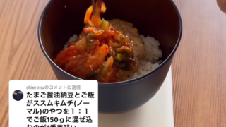 未分類 納豆アレンジ!視聴者様激推し「たまご醤油たれ納豆×ご飯がススムキムチ」が最強すぎた!【納豆おじさん】 今回は、「たまご醤油たれ納豆とご飯がススムキムチ(ノーマル)を1:1でご飯150gに混ぜる」を実食! 材料はスーパーで手軽にGETでき、分量指定で再現性も◎! …実食! 文句なしの星5つ!★★★★★ たまご醤油たれ納豆と旨辛キムチが1:1で... 2025.02.12 未分類